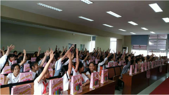 在这样的愿景之下,2018年DB旗舰在全国中小学开展“成长的翅膀”青春期初潮知识讲座活动,共计举办了2000多场,覆盖近100万的9-12岁年轻小女生。